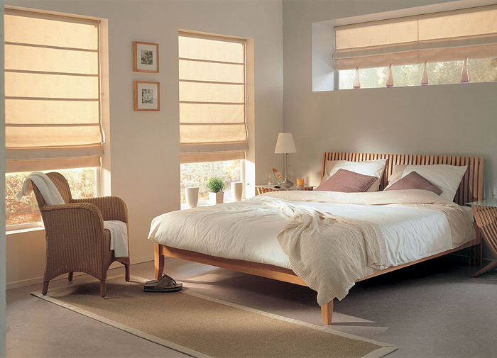 При выборе рулонных штор следует обращать внимание на цвет стен: необходимо, чтобы шторы и стены были выполнены в одинаковых тонах. С помощью рулонных штор можно визуально увеличить или уменьшить комнату.