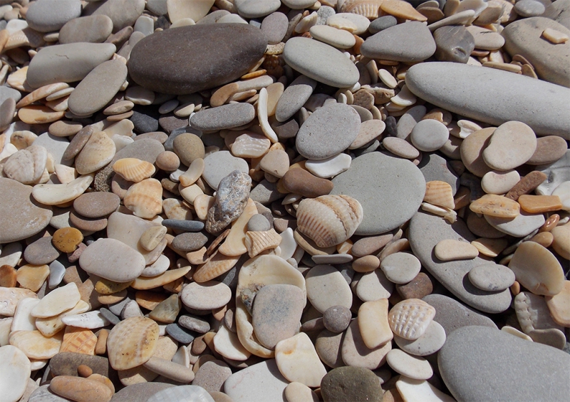 Морская галька более плоская и гладкая, потому что проходит постоянная шлифовка регулярными приливами и отливами, которые действуют на нее, как абразив.